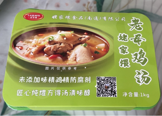 南通市处所手艺尺度(DB3206/T030-2003)的文本中,金黄油亮的鸡汤正注入铝箔包拆,